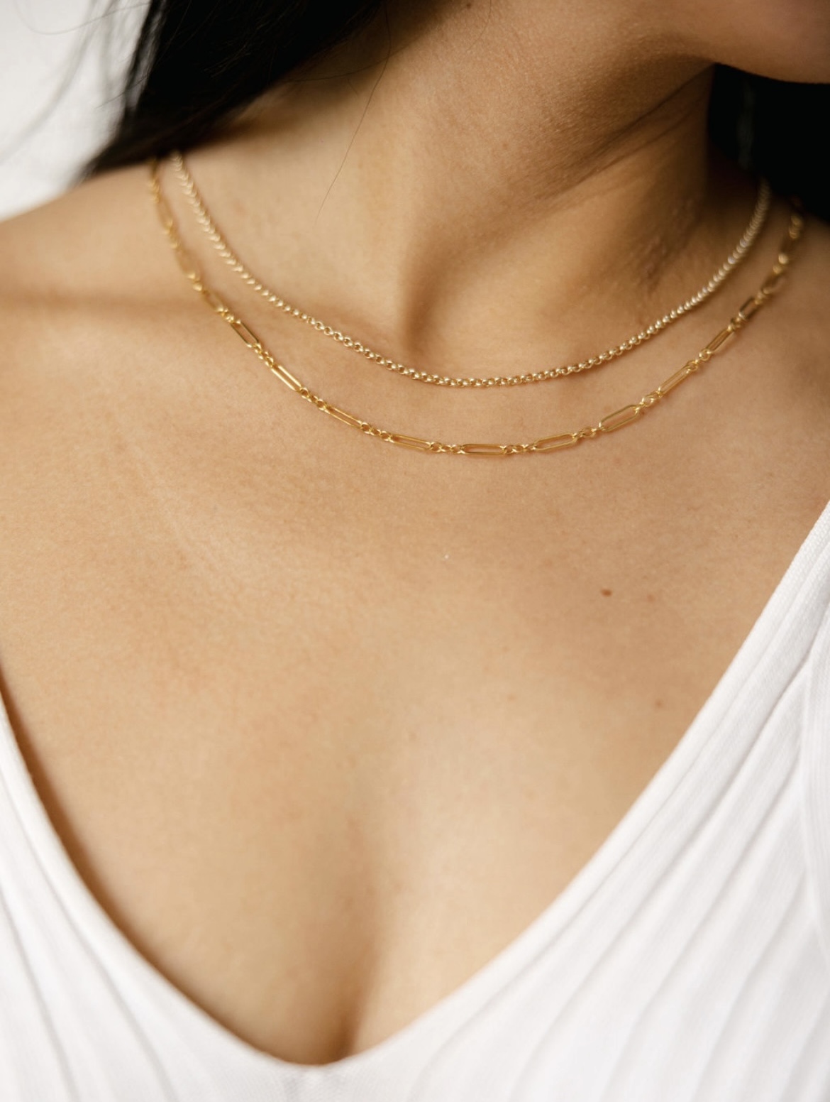 The gold-filled chains are a game-changer for me. I wear them in the pool with no worries about tarnishing. So happy!